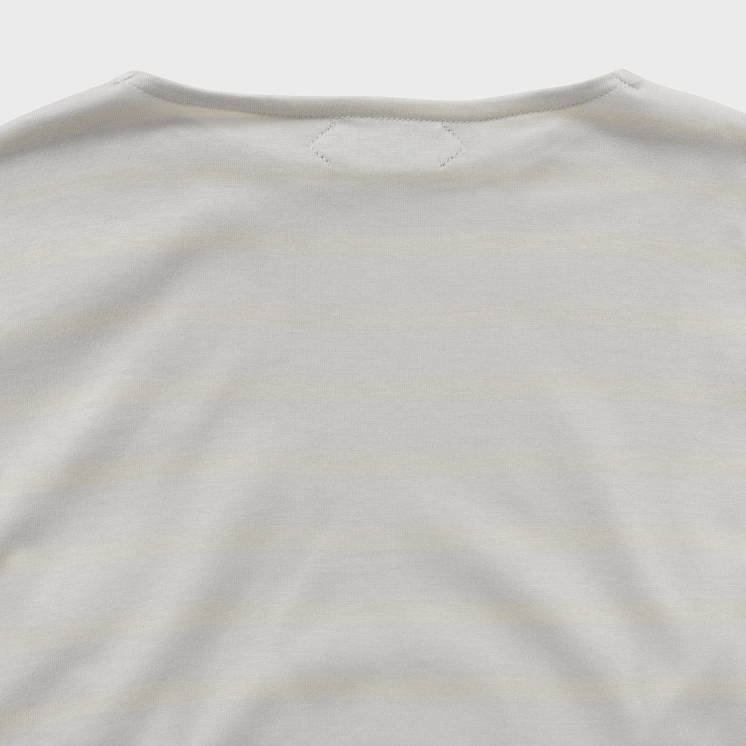 BIG CHARLOTTE Ⅲ、COCO Ⅲ、OWEN Ⅲ 、これら3品番は今シーズンより編み立て工場が変わります。大正紡酢便ゴールド30番のポテンシャルをさらに引き出すべく最終の生地加工にトロトロになる最新技術を投入。極めて気持ちの良い新風合いの定番ボーダー品番です。